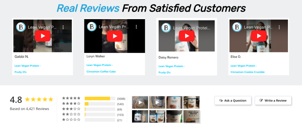 Customer feedback is also a great way to attract potential customers and drive new business. Almost 100% of customers look for reviews when shopping online, while the average customer reads approximately 1 to 4 reviews before making a purchase decision. Brands should highlight reviews on their landing page and product pages, include testimonials in their social, email, and ad strategies, and allow customers to ask questions to further boost engagement and increase their confidence in making a purchase.