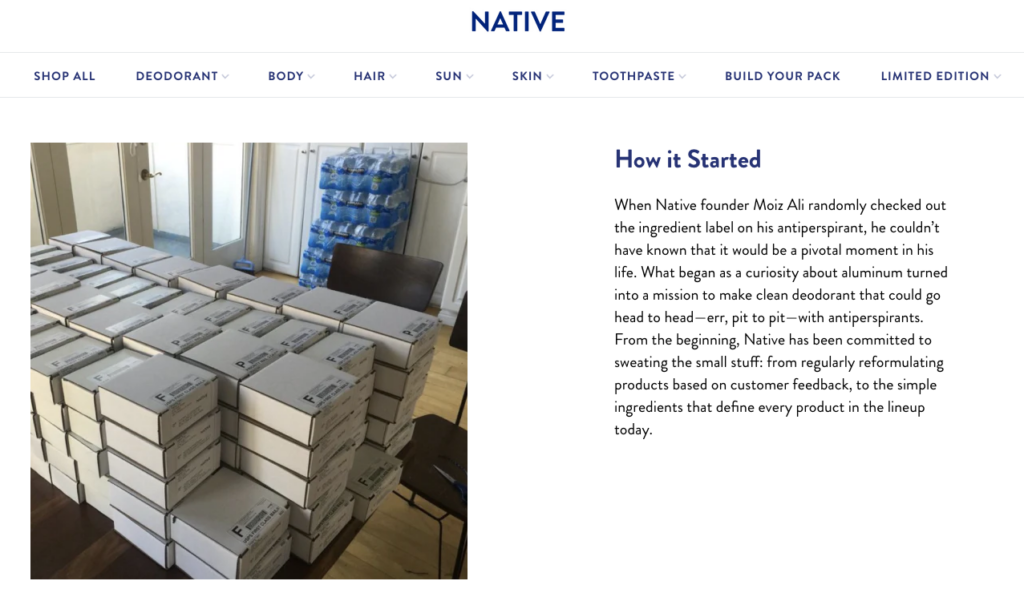 Native, a personal care brand that uses Stamped Reviews to drive conversions and gain insights, regularly uses puns and twists on popular idioms to create a sense of playfulness. Examples include “Native has been committed to sweating the small stuff”, “you deserve personal care products without any dirty secrets”, and “we want to help you practice safe sweats”.