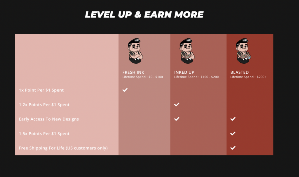 To reward high-value customers, brands should incorporate VIP tiers and referrals into their loyalty programs. VIP tiers are a great way to encourage customers to spend more and/or earn more points to gain access to better perks. For example, once they earn 1,000 points, they move into a higher tier and receive free shipping for all future purchases.