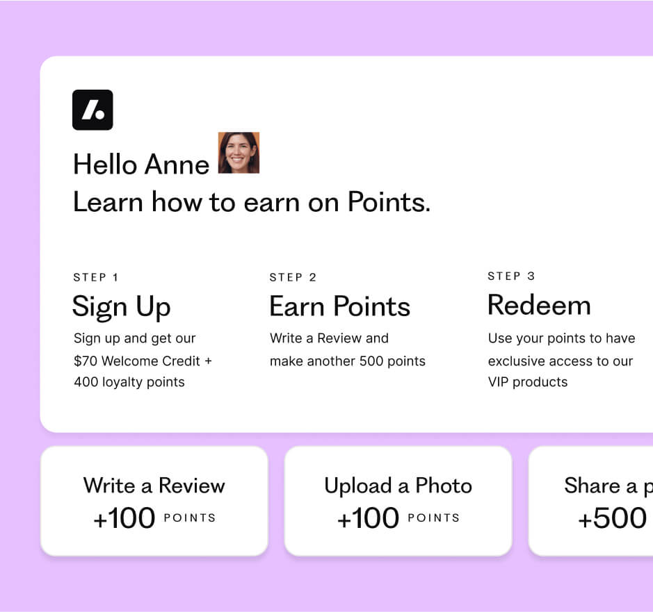 Seamless points tracking and redemption integrated into the customer journey. Deliver a fully customized, on-brand loyalty experience that matches your branding and theme. Offer customizable rewards, from discounts to exclusive perks, and create tiered rewards systems to incentivize more purchases.